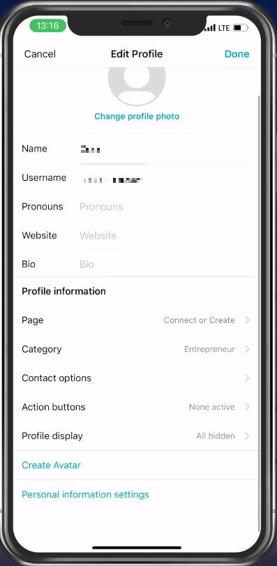 Åbn Instagram-appen og naviger til din kontosektion. VælgeRediger profil.