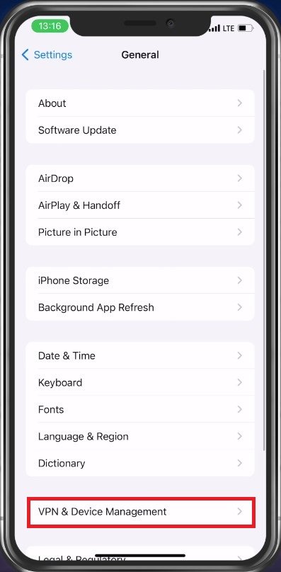 Hvis dette ikke er tilfældet, skal du lukke Instagram-appen og åbne dine iPhone- eller Android-indstillinger, selv efter at du har kigget på din spam-e-mail-mappe. På iOS-enheder skal du navigere tilGenerelsektion og trykVPN & Device Management. Hvis du leder efter en pålidelig VPN-forbindelse, anbefaler viPrivatVPN.