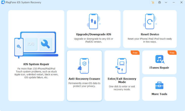 Hvis din iPhone ikke har nogen tilgængelige opdateringer, eller opdateringsprocessen mislykkes, kan du stole på MagFone iOS System Recovery i stedet. Dette kraftfulde værktøj er designet til at løse systemrelaterede problemer som iPhones blå dødsskærm, iPhones røde dødsskærm eller iPhones hvide dødsskærm. Den reparerer iOS uden tab af data og er kompatibel med alle iOS-versioner. Med blot et enkelt klik kan du bringe din iPhone-skærm tilbage til normal. Sådan gør du det nemt.