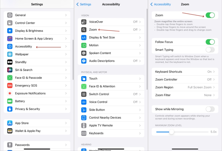 Trin 1.ÅbenIndstillinger > Tilgængelighed > Zoom.