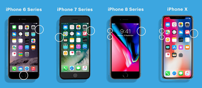 - For iPhone X og nyere modeller, inklusive iPhone 8 og iPhone SE (2. eller 3. generation):Tryk og slip hurtigt knappen Lydstyrke op, derefter knappen Lydstyrke ned, og til sidst skal du trykke og holde tænd/sluk-knappen nede, indtil du ser Apple-logoet.