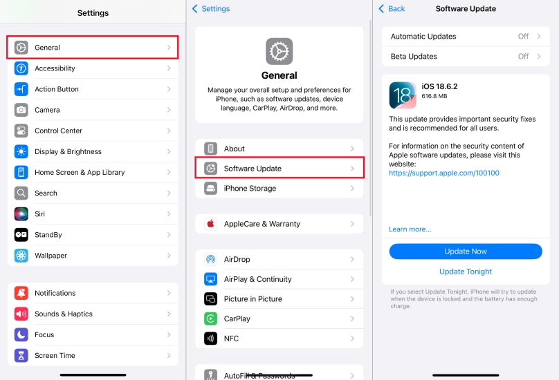 Trin 1.ÅbenIndstillinger > Generelt > Softwareopdatering.