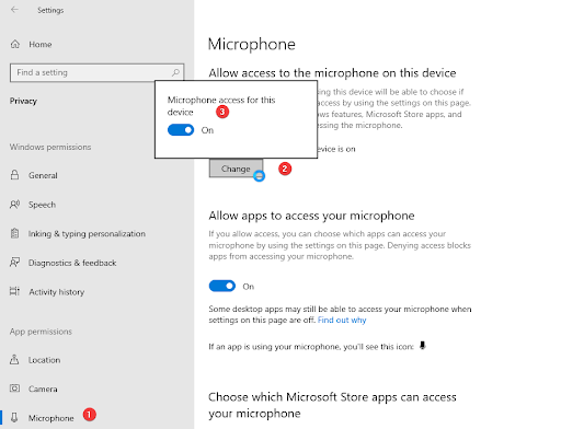 I nogle tilfælde hjælper det ikke at opdatere driveren, da mikrofonen ikke har adgangstilladelse. Følg disse trin for at sikre, at det bliver givet: