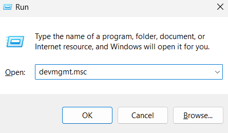 - I Kør søgning, skriv devmgmt.msc og tryk på Enter for at åbne Enhedshåndtering.