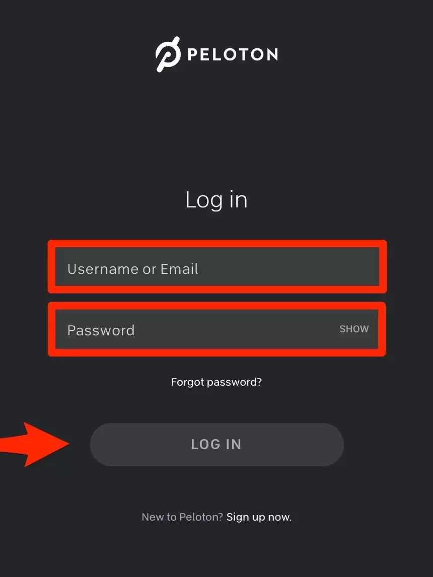 Tryk på.deType.login-legitimationsoplysningerlogget ind på Peloton igen fra din iOS-enhed