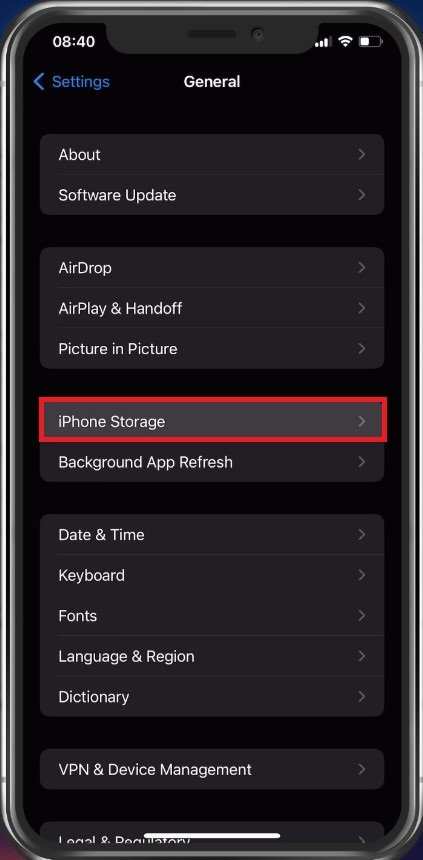 Hvis problemet fortsætter, skal du sørge for, at du har nok lagerplads tilbage på din enhed. Fra dine hovedindstillinger skal du trykke påGenerel. Vælg heriPhone opbevaring.