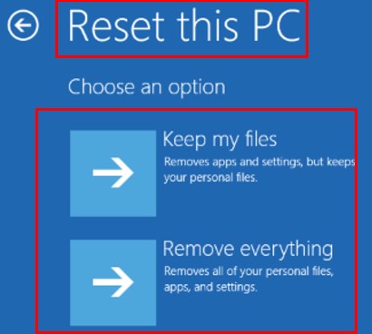Trin 4:Vælg derefter "Behold mine filer" eller "Fjern alt” på den næste grænseflade, der vises.