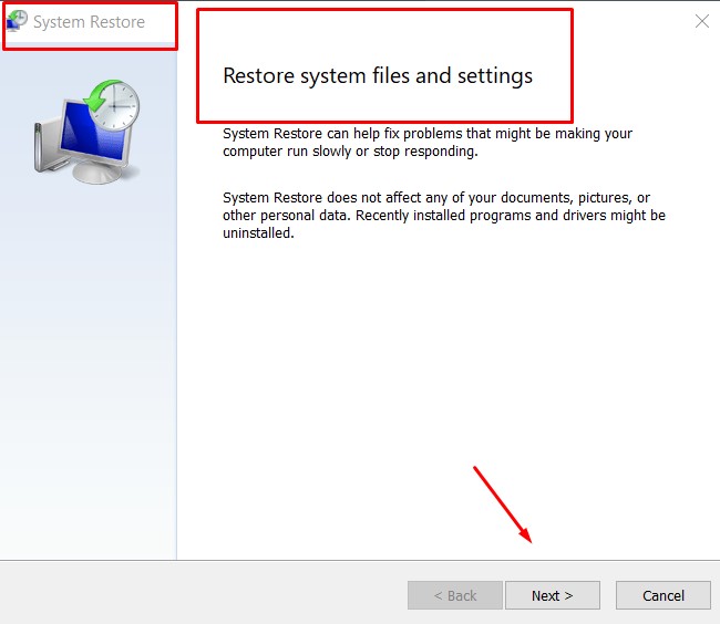 Gendannelse af din computer til det sidste gendannelsespunkt, før fejlen opstod, kan også hjælpe med at løse dette problem. Sådan kører du en systemgendannelse: