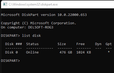 Trin 8:Windows-systemet er normalt installeret på "disk 0." Hvis ikke, skal du ændre denne kommando, så den matcher dit disknummer.