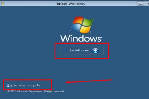 Trin 3:På "Installer nu" skærmen, vælg "Reparer din computer.”