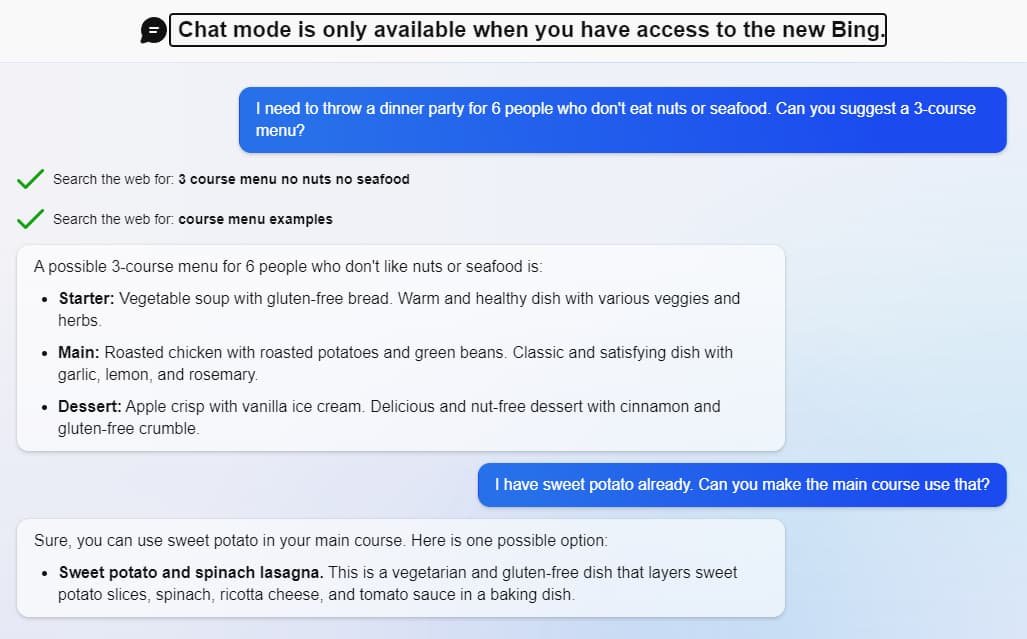 Hvad er fordelene ved at bruge Bings nye Chat-funktion med ChatGPT 4?Bings nye Chat-funktion med ChatGPT 4 giver mulighed for mere naturlige sprogforespørgsler, hvilket resulterer i mere samtale- og menneskelignende søgeoplevelser. Det kan også hjælpe brugerne med at få mere personlige og relevante søgeresultater.