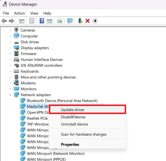 En forældet eller beskadiget netværksadapterdriver kan være den usynlige væg mellem dit system og dets Wi-Fi-ikon. Det er afgørende at sikre, at din driver er opdateret: