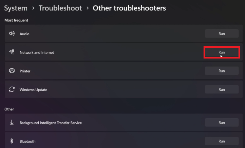 Trin 2:Find og kør fejlfindingen "Internetforbindelser" under "Andre fejlfinding".