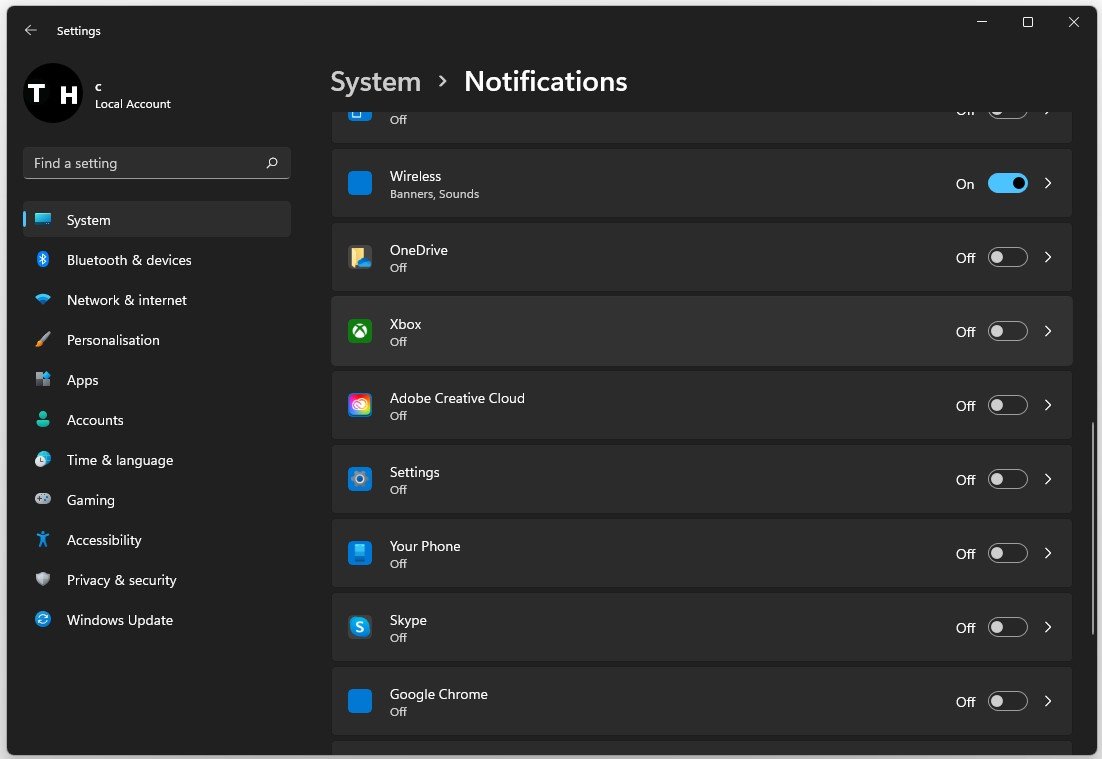 Åbn dine Windows-indstillinger tilSystemfanen. UnderMeddelelser, bør du forhindre nogle applikationer i at sende dig meddelelser, især fra 3. parts afsendere, såsom Adobe Creative Cloud eller Discord.