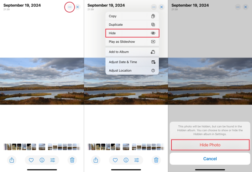 Trin 3.Tryk påSkjul billedefor at bekræfte, at du vil skjule billedet.