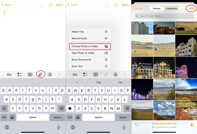 Trin 2.Tryk påVedhæftet filknappen og vælgVælg Foto eller Videovalgmulighed.