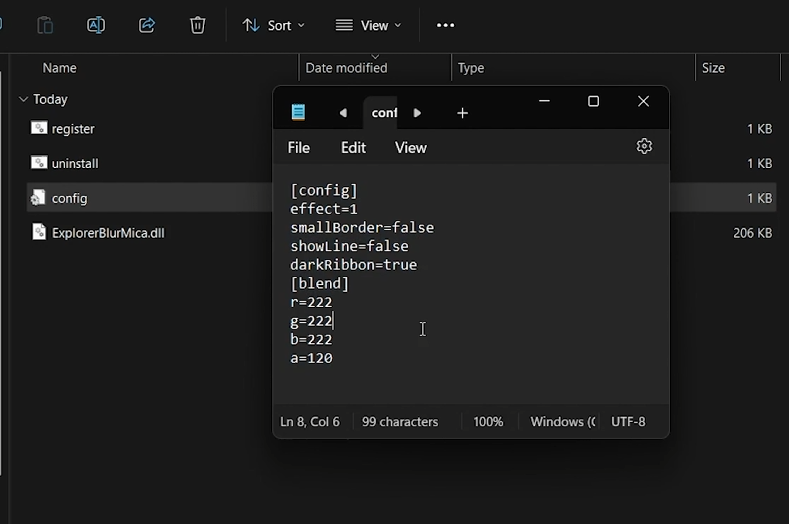 configFil: Find og åbn i den samme mappeconfigfil.Rediger indstillinger for gennemsigtighed: Juster værdien af