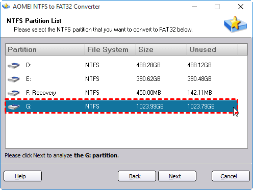 Trin 2.Vælg "NTFS til FAT32" i pop-out vinduerne og tryk på "Næste”.