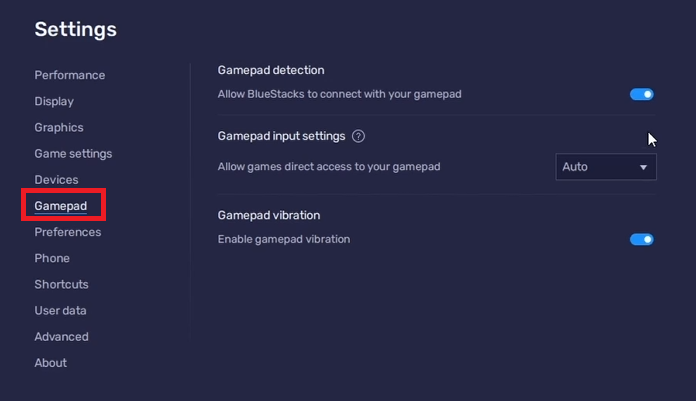 Naviger til Gamepad-indstillinger:Se efter Gamepad-sektionen i indstillingsmenuen. Her skal du aktivere "Gamepad-detektion"-indstillingen for at lade BlueStacks genkende din tilsluttede gamepad eller controller.