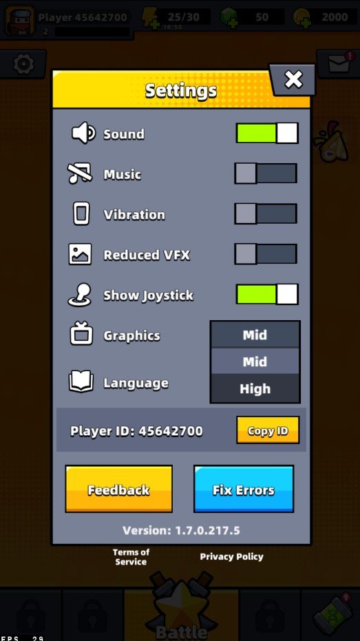 Når du er indlæst i spillet, skal du gå over til dine indstillinger i spillet. Hvis du bemærker nogen forsinkelse eller andre præstationsproblemer, når du spiller Survivor.io, så sørg for at sænke grafikindstillingen.