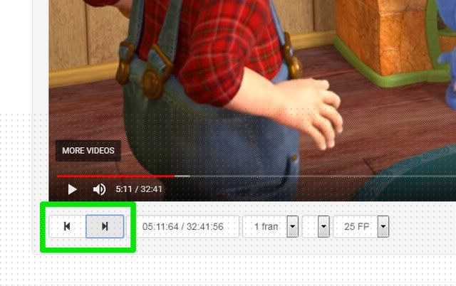 Videoen vil blive indlæst med kontroller i bunden af den. Du kan klikke på tilbage-knappen for at springe et billede tilbage, eller på frem-knappen for at springe et billede fremad.