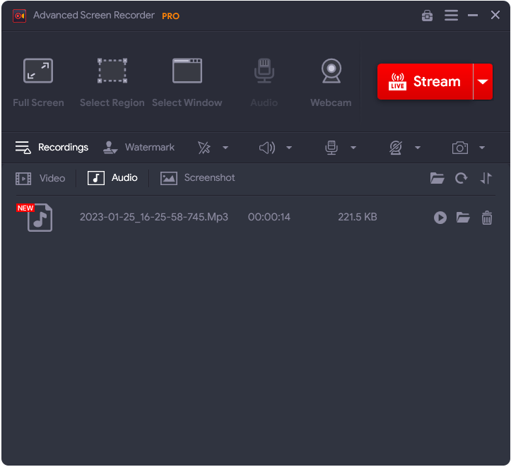 Hvis du vil have en avanceret måde at optage lyd på, anbefaler vi at prøve Advanced Screen Recorder. Denne tredjeparts stemmeoptager-app hjælper ikke kun med at optage lyd, men tillader også optagelse af video i forskellige tilstande, i PIP-tilstand og via webcam. Du kan også planlægge optagelse, autostop og opdele den. Denne tredjeparts software til stemme- og videooptagelse foretrækkes af professionelle og hjemmebrugere.