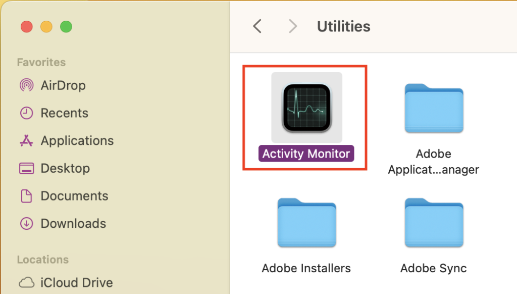 5) FindAktivitetsmonitorog dobbeltklik på dets ikon.