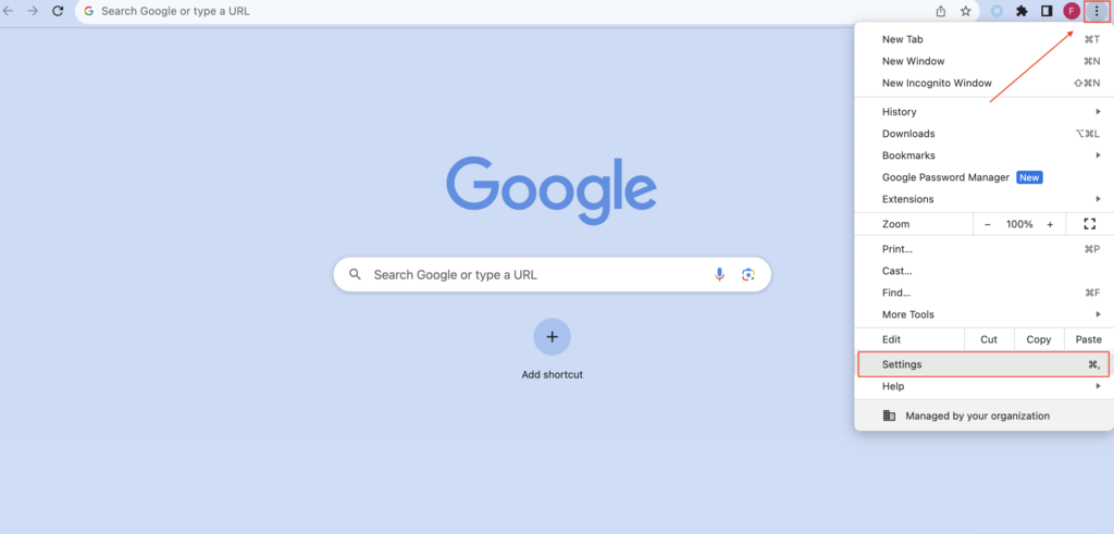 1) Åbn Chrome, og klik derefter på de tre prikker i øverste højre hjørneIndstillinger.