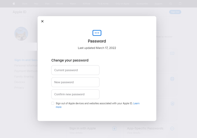 Mulighed 1. Nulstil adgangskode på appleid.apple.com, hvis du ikke glemmer det