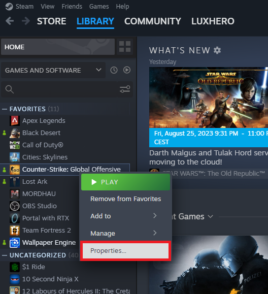 Gå til Steam-biblioteket:Luk dine Steam-indstillinger og åbn dit Steam-bibliotek.