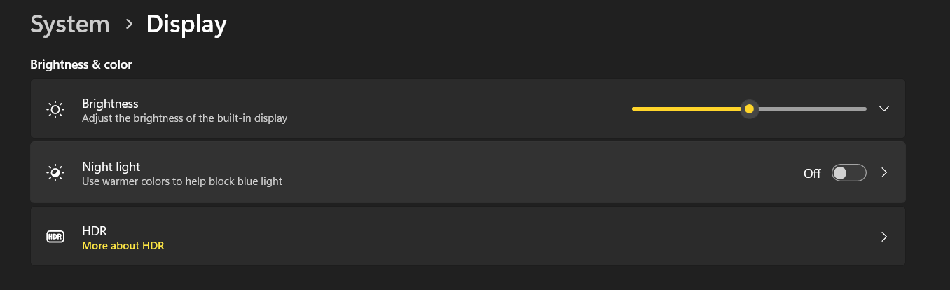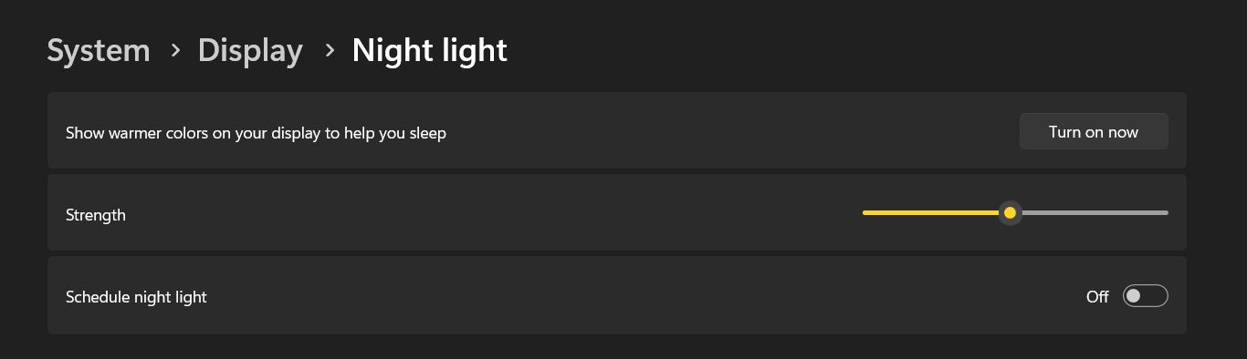 Trin 3– I Skærmindstillinger, find skiften til Natlys og sluk den.