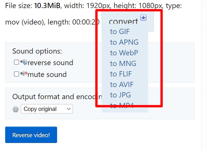 - Når det er indlæst, skal du vælge Vælg fil i boksen Reverse Video.