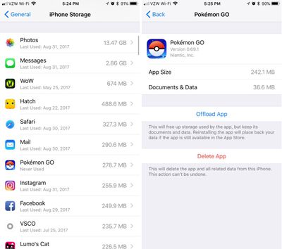 Et af Apples forslag er automatisk at slette ubrugte apps, når lagerpladsen på din enhed er lav. Hvis du aktiverer denne funktion, sletter Apple apps, du ikke bruger ofte, mens du gemmer dokumenterne og dataene, så du kan downloade dem igen og om nødvendigt vælge tilbage, hvor du var.