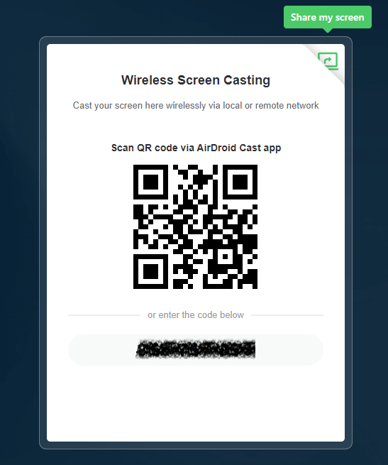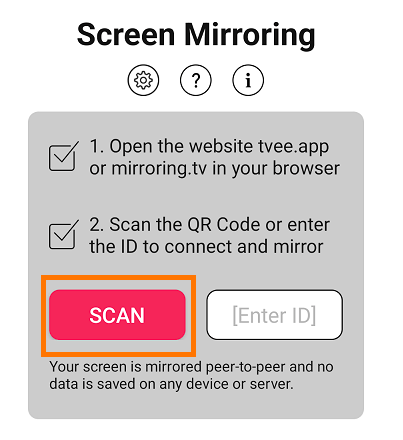6. Når den er installeret, skal du åbneScreen Mirroring apppå din Android-smartphone, og klik påScanvalgmulighed. Scan nu QR-koden på browseren.