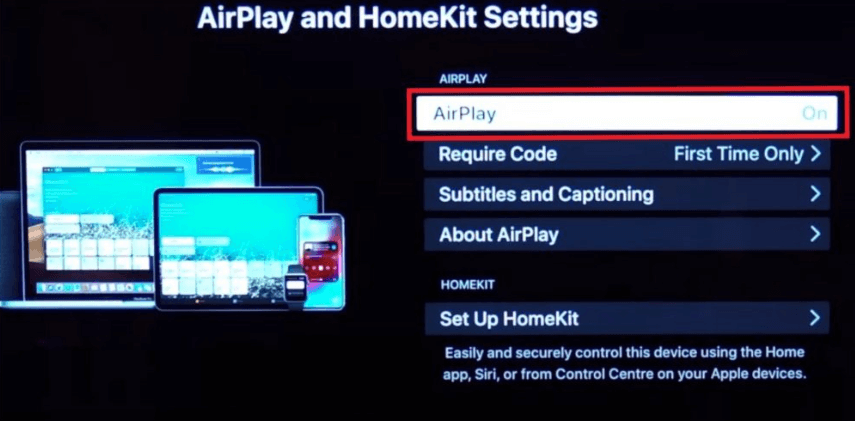 4. VælgAirPlay og HomeKit-indstillingerog drejPåAirPlay.
