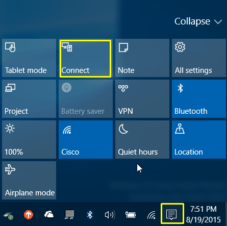2. ÅbnWindows Action Centerog ramteForbindeikon.