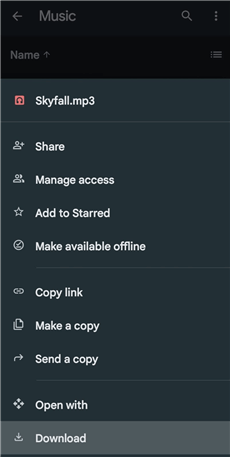 Trin 6. Tryk på de musikfiler, du vil overføre til din Android-enhed, tryk derefter på menuikonet med tre prikker og vælg "Download"-indstillingen.