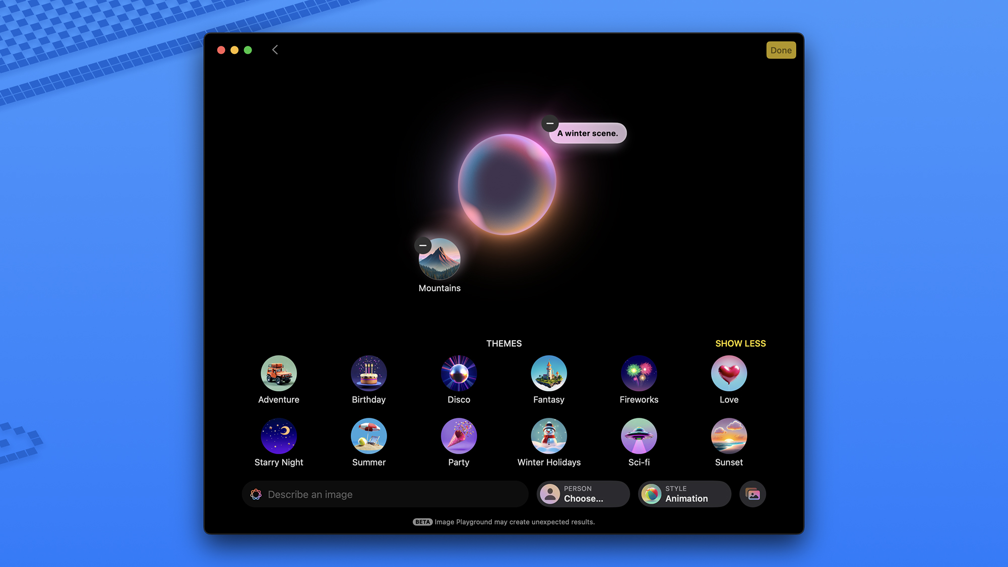Image Playground-appen er en del af Apple Intelligence. Skærmbillede: AppleApple Intelligence er også i stand til at opsummere websider i Safari, prioritere dine e-mails i Mail og oprette tilpassede emoji-ikoner (kendt som Genmoji) i iMessage og andre apps. Den kan identificere, hvad du peger dit iPhone-kamera mod, oprette nye billeder fra bunden i Image Playground-appen og anvende en række forskellige tricks til eksisterende billeder gennem Photos-appen.