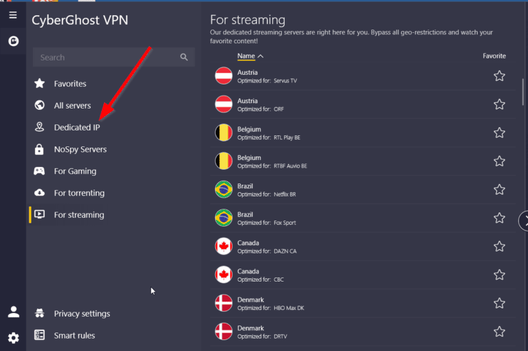 Imidlertid,undgå CyberGhost-servere i lande, hvor Ome TV generelt er forbudt eller utilgængelig. Dette inkluderer dets servere i Egypten, Saudi-Arabien og UAE.