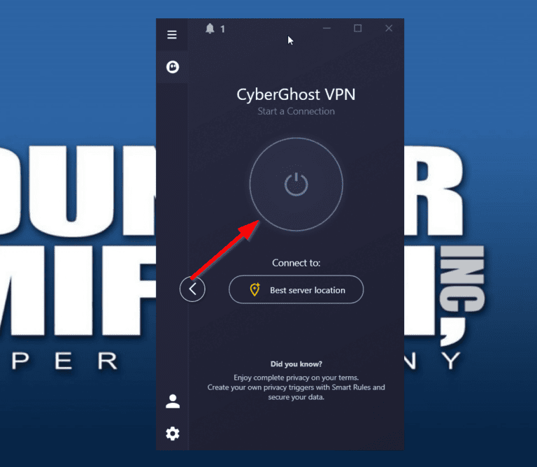 - Klik på den store tænd/sluk-knap for at oprette forbindelse.