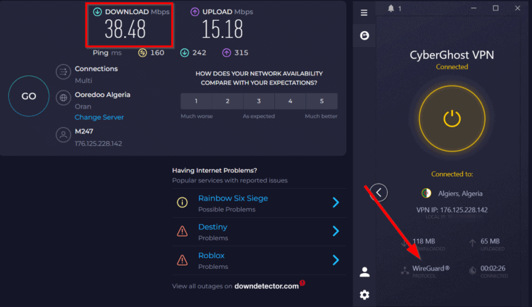 CyberGhosts WireGuard var hurtigere end IKEv2 på pc og låste min internetudbyder op for at give mig hurtigere internethastighed!