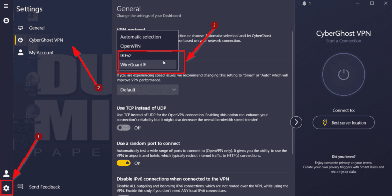 Du har brug for stabile og hurtige internethastigheder for at nyde problemfri Ome TV-øjeblikke og fange alt i realtid. Til det lover CyberGhost to hurtige VPN-protokoller: IKEv2 og WireGuard.