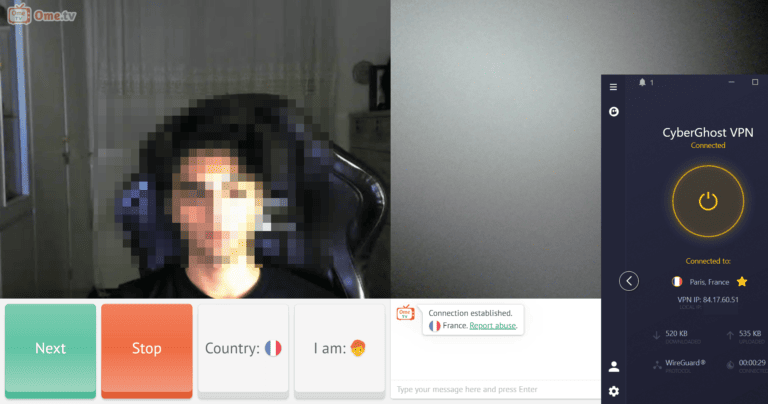 Hvis du gør det, skjules din IP-adresse for fremmede fra Ome TV, som muligvis bruger en IP-lokalisering på alle, de chatter med. Ligeledes,CyberGhost giver dig mulighed for at chatte med fremmede fra Storbritannien, Frankrig,USA,Sydafrika,eller et hvilket som helst andet sted fra komforten af dit soveværelse.