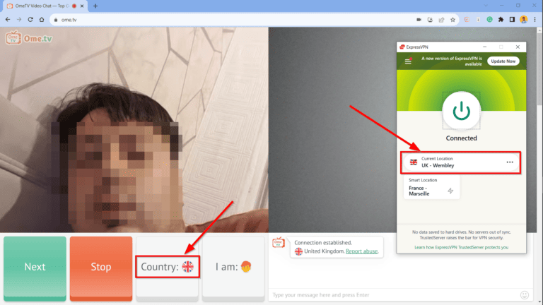 Du kan bruge ExpressVPN med Ome TV vedopsætning af VPN på din pc/mobilenhed,oprette forbindelse til en server i en Ome TV-understøttet region, og chatter med fremmede hele dagen.