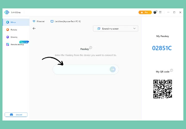 Trin 4: Klik på+Skærmspejlingknappen på din pc, og indtast adgangskoden, som du kan se på din tablets LestView-grænseflade. Tryk derefter på den blå pil for at starte.