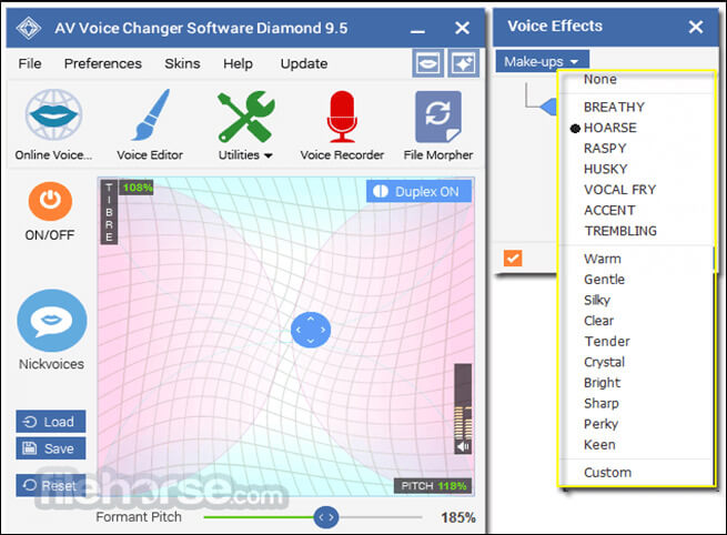 Morphvox Proer fantastisk til at gøre din stemme til en cool kvindelig version. Den er nem at bruge og har masser af lydeffekter til brug i realtid. Du kan se din stemme ændre dit liv og tilpasse den til din onlinekarakter.