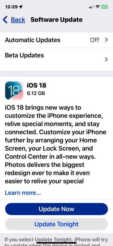 Bemærk: Du skal muligvis rulle ned på skærmen "Softwareopdatering" for at se iOS 18-opdateringsindstillingen, især hvis du i stedet ser iOS 17.7 som en tilgængelig opdatering.