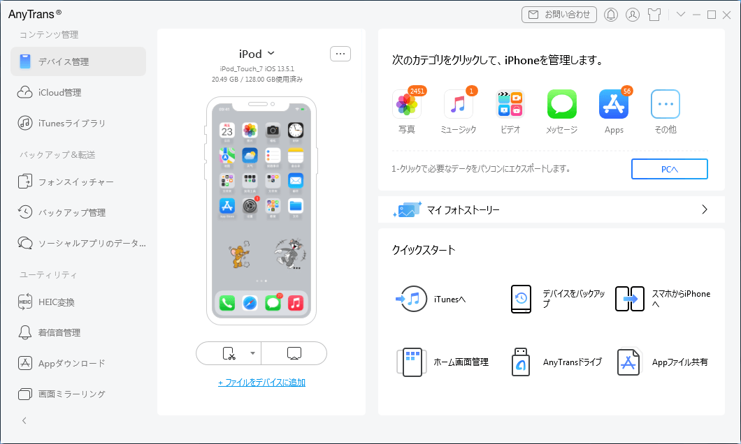 Her kan du tilføje sange til iPhone eller eksportere musik fra iPhone til iTunes, computer eller en anden iPhone.