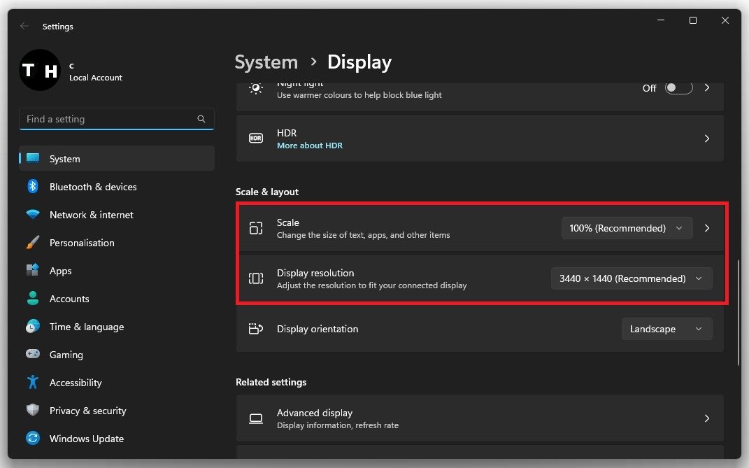 Sørg for, at skaleringen er indstillet til100%og du bruger en standard native opløsning. I dine grafikindstillinger i spillet skal du indstille vinduestilstanden tilFuldskærm.