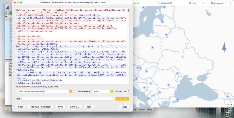 Jeg brugte Wireshark til at teste OpenVPN- og NordLynx-protokollerne.